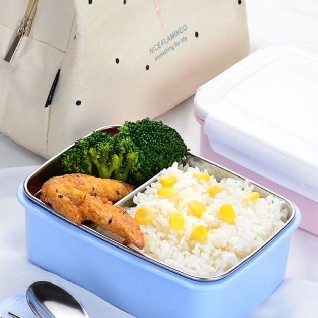 ステンレス製の仕切り付き保温弁当箱は、洗うのが楽な素材と構造が特徴です。