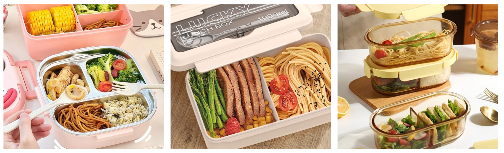 二段重ねの構造により、主食とおかずをしっかりと分けて収納できます。