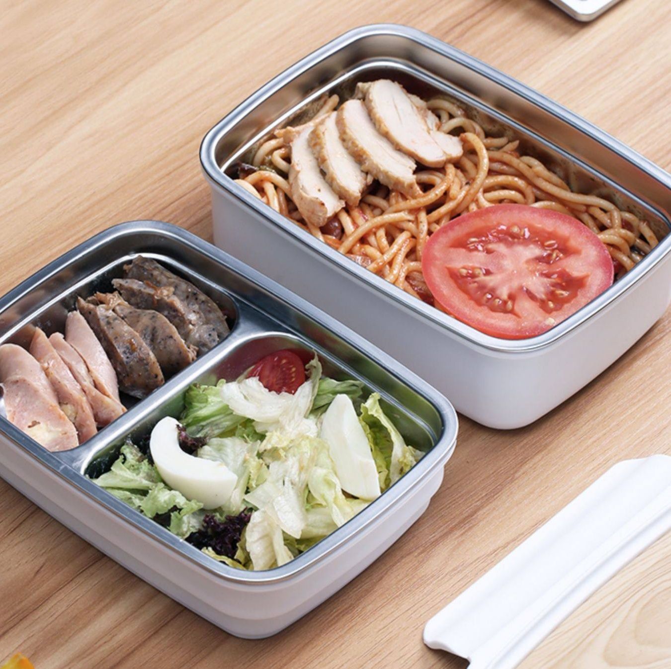 上段は仕切り付きで主食と副菜を分けて収納でき、下段にはたっぷりおかずが入ります。