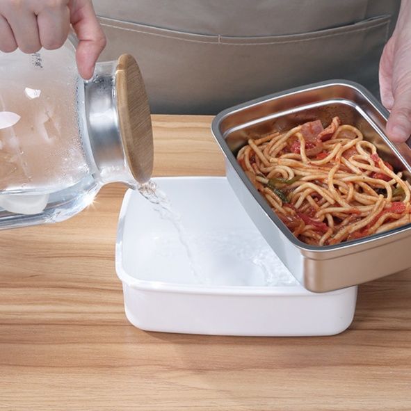 ステンレス製の内容器が保温性を高め、食べる時まで温かさをキープします。