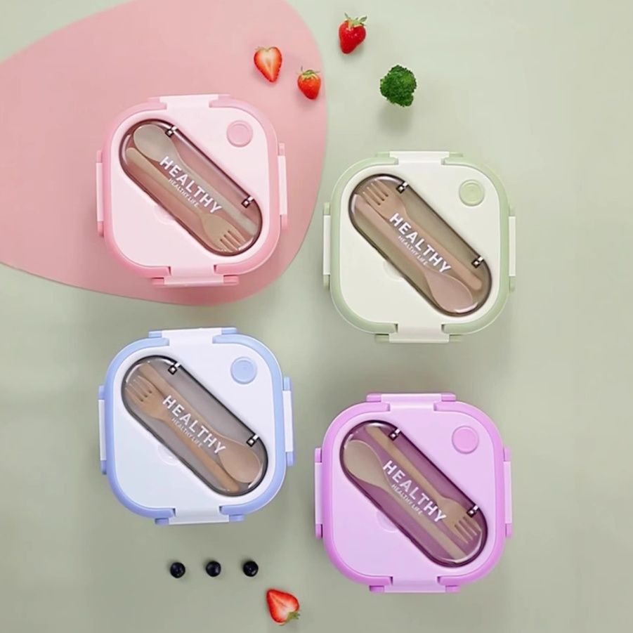 密閉性に優れた蓋は持ち運びも安心で、付属のカトラリーも収納可能です。