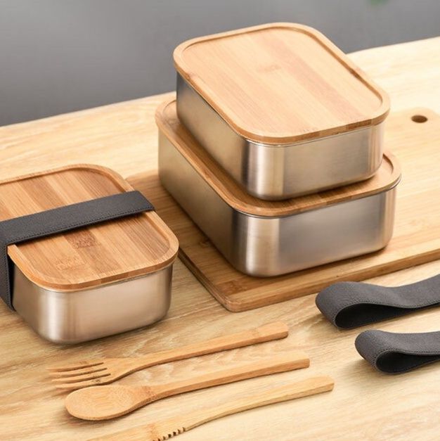 天然竹の蓋とステンレス本体を組み合わせた保温弁当箱です。